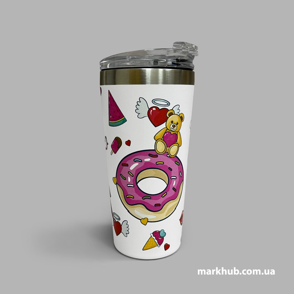 Брендированные термосы, кружки и бутылки для воды выглядят очень эффектно и стильно. Однако далеко не каждая технология печати способна нанести полноцветное изображение на изделие цилиндрической формы, обеспечив при этом максимальное покрытие его поверхности. Справиться с этой непростой задачей может круговая УФ-печать. Это уникальная технология, позволяющая расширить полезную рекламную площадь печати, реализовав креативные дизайнерские идеи.